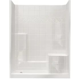 • White Ella Shower Stalls Kits E Lwh XBasic 60 in. x 33 in. x 77 in. AcrylX 1-Piece Shower Kit with Shower Wall and Shower Pan in White, LHS Seat, RHS Drain